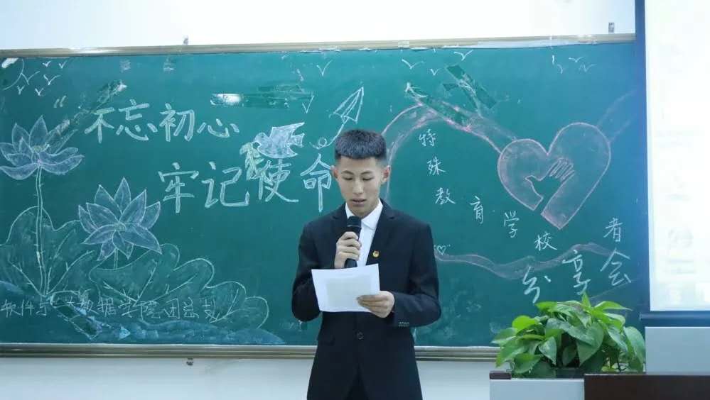 为深入学习习近平新时代中国特色社会主义思想,落实“不忘初心,牢记使命”主题教育精神,加强革命传统教育,弘扬志愿活动精神,推动支援服务发展,提高我院青年志愿意识,10月21日下午6点10分,由软件与大数据学院团总支学生会体育部、青年志愿者协会联合组织的特殊教育学校志愿者分享会在A座教学楼506进行,软件与大数据学院团总支书记李茜雯、辅导员郭凯琪老师出席本次分享会,团总支学生会主席团,各部门成员和各班级班代表到场参加。