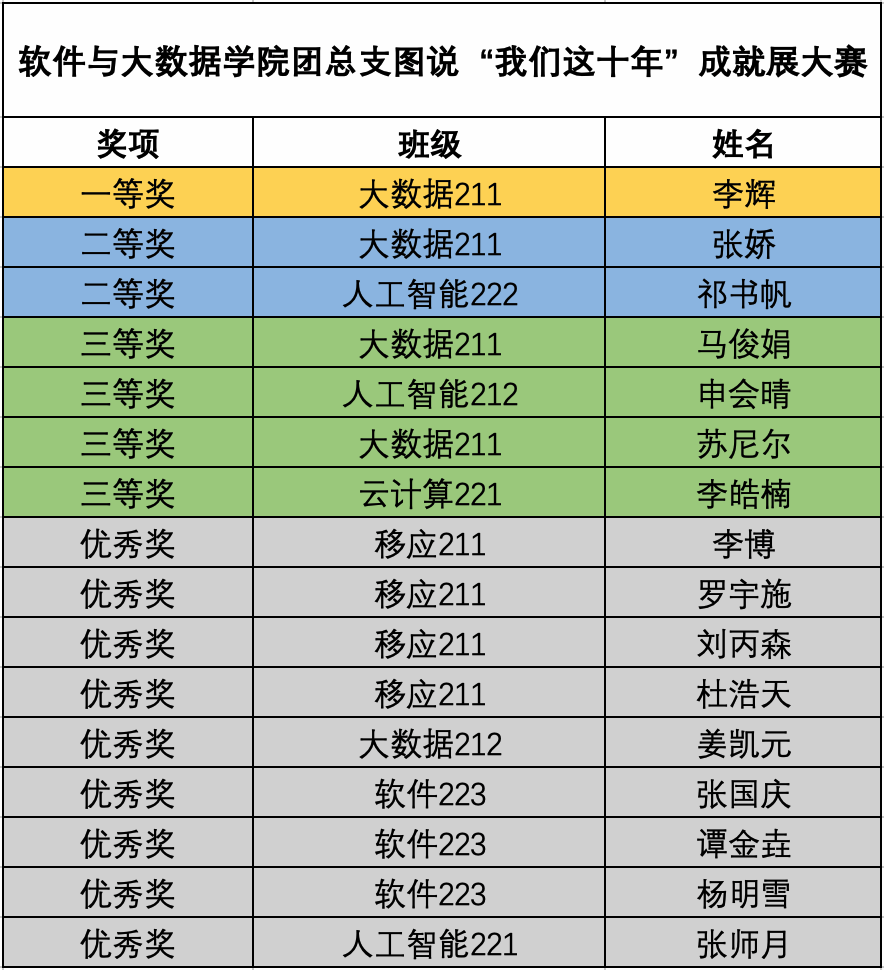 公示|软件与大数据学院团总支图说“我们这十年”成就展大赛获奖名单