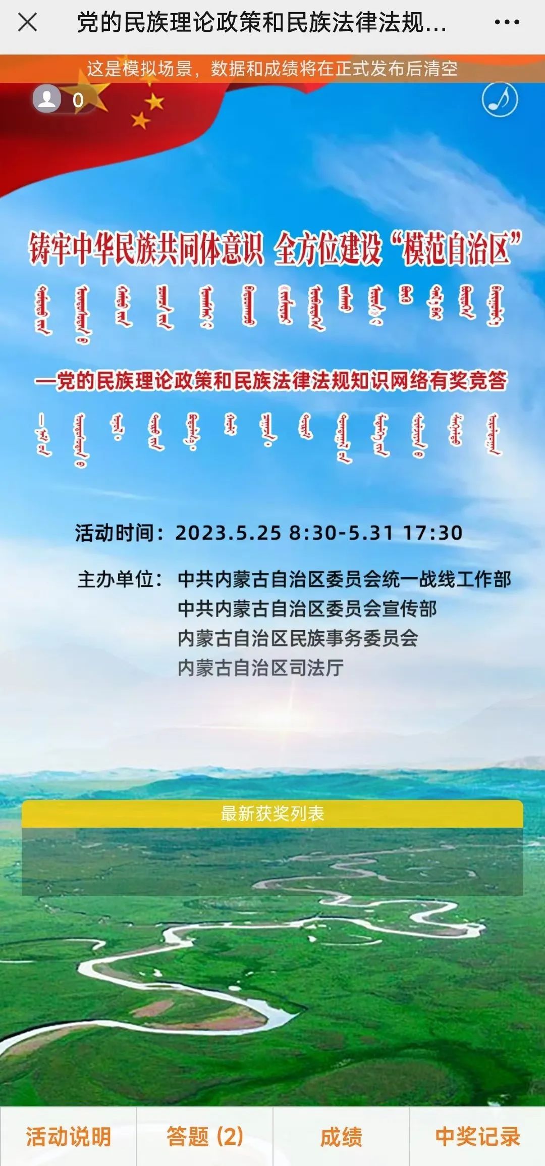 在2023年全区“民族法治宣传周"来临之际,由自治区党委统战部、自治区党委宣传部、自治区民族事务委员会、自治区司法厅主办的党的民族理论政策和民族法律法规知识网络有奖竞答活动开始啦!