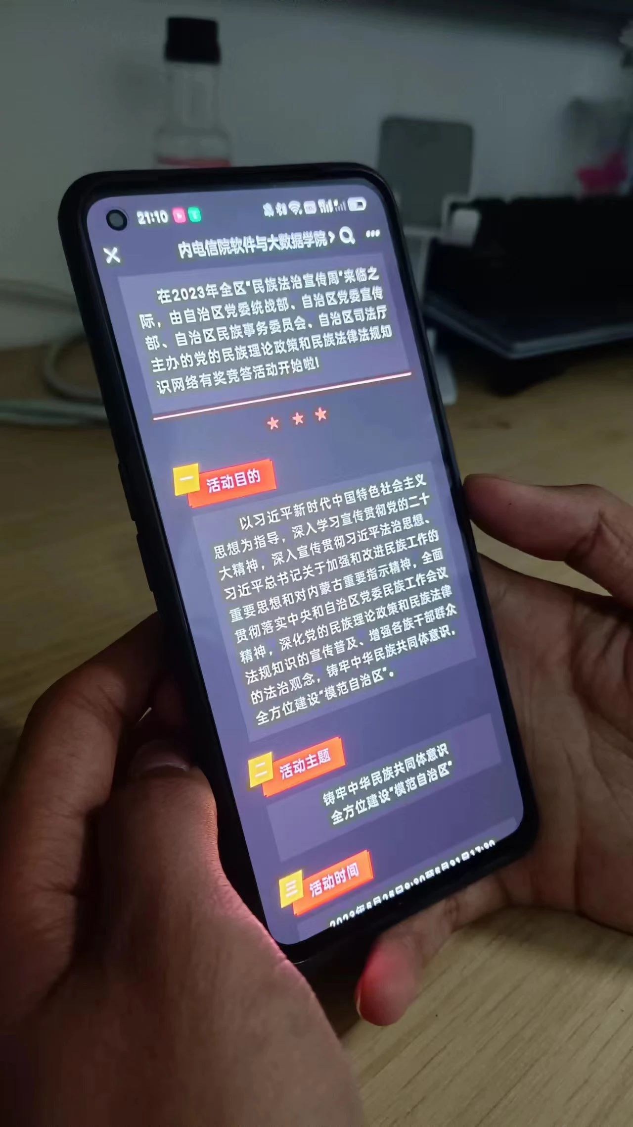 为扎实做好党的民族理论政策和民族法律法规宣传教育,同时深化民族团结进步,铸牢中华民族共同体意识。软件与大数据学院团总支于5月31日开展“党的民族理论政策和民族法律法规知识”网络有奖竞答活动,进一步扩大了民族政策宣传的传播范围和影响力。