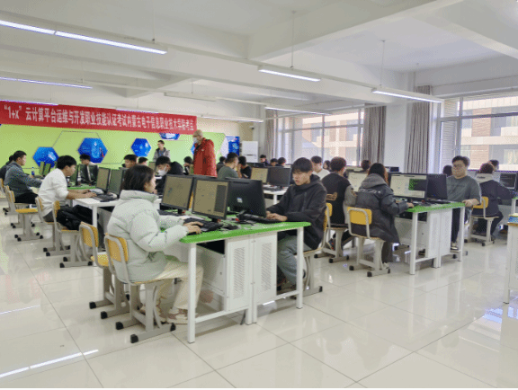 本次考核分为理论和实操两部分,考试时间为4个小时,云计算平台运维与开发职业技能等级认证考试的培训评价组织方为南京第五十五所技术开发有限公司,公司拥有多年举办云计算职业技能大赛经验,所涉及考核内容包括,项目管理、企业私有网络构建与运维、应用系统与集群的构建与运维、私有云技术、公有云技术、容器云技术和云平台运维与开发等知识技能,所涉及知识内容已经融入云计算技术应用专业课程《云计算应用开发》、《云计算综合运维》的教学过程中。为确保认证考试顺利开展,我院按照培训评价组织要求成立了考务、技术支持组,认真组织学生辅导、考试模拟,精心准备考试环境。考试过程中,监考教师认真负责,学生考试纪律良好,顺利了完成考试组织、资料上传等各项任务。