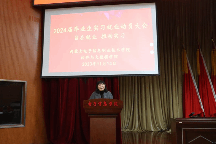 为扎实推进2024届毕业生实习就业工作,确保毕业生实习就业工作平稳有序开展,软件与大数据学院于11月14日召开2024届毕业生实习就业动员大会,进一步帮助同学们明确实习要求,把握实习方案,引导同学们做好实习前的各项准备,树立正确的就业观念,认清就业形势,把握就业机会,确保毕业生实习、就业工作的顺利展开。参加会议的有软件与大数据学院党总支书记杨志敏、院长白文荣、党总支副书记张志海、副院长王晓燕、副院长赵星,全体专任教师及2024届全体毕业生。