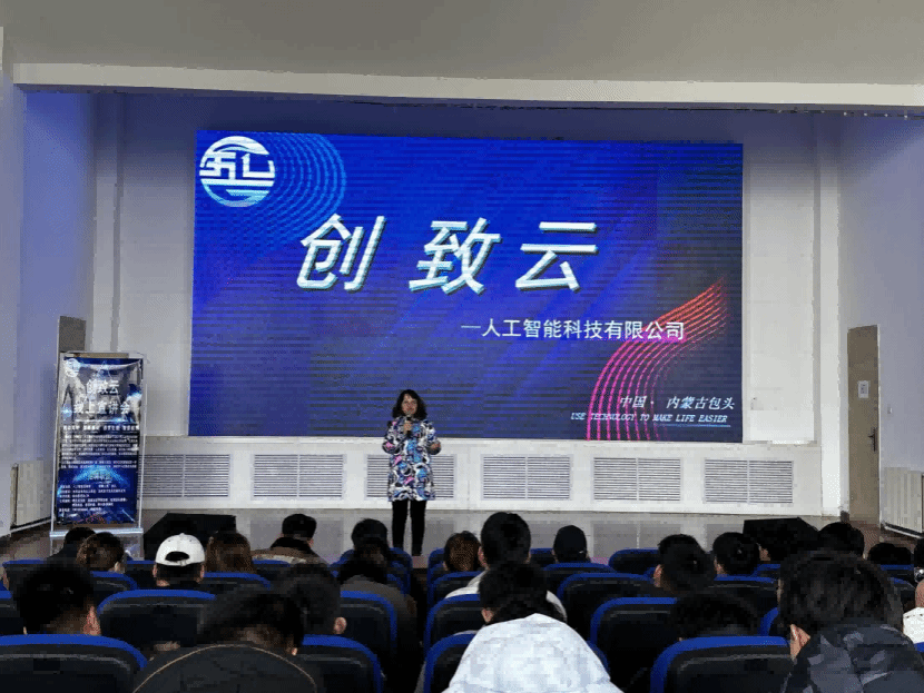 接着,创致云(内蒙古)人工智能科技有限公司经理介绍了公司的业务范围、合作单位、招聘岗位等基本情况,让在座同学对创致云公司有进一步的了解。在宣讲会的互动环节,同学们积极举手踊跃发问,就自己所关心的实习待遇、企业所需求的人才素质、公司发展机遇、工作的时间地点和方式等问题与企业方代表进行了深度交流。