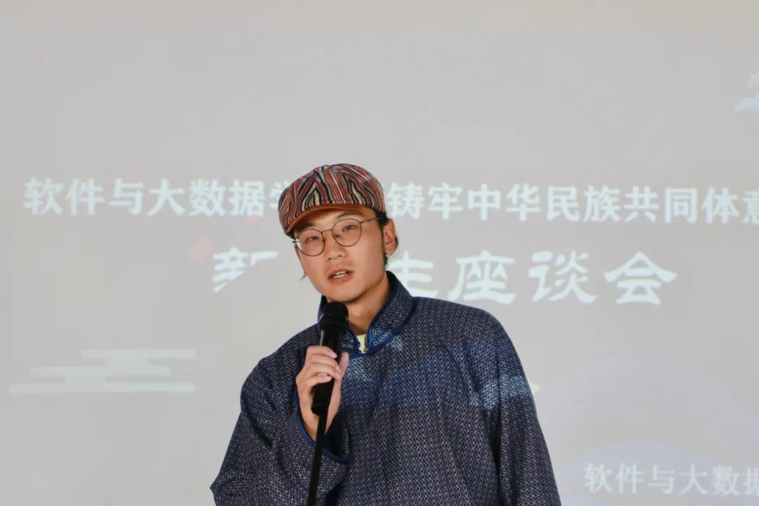 然后,20级少数民族学生代表结合自身思想文化和自身经历,讲述了一年中所收获到的经验和在团总支的教育下自己的爱国精神是如何得到全方位的提高,并分析了自身存在的不足,紧接着新老学生代表真诚交流,共同梳理问题,探讨在党的领导下中华民族是如何像石榴籽一样紧紧的抱在一起,自己的思想文化水平是如何一步步得到提升。