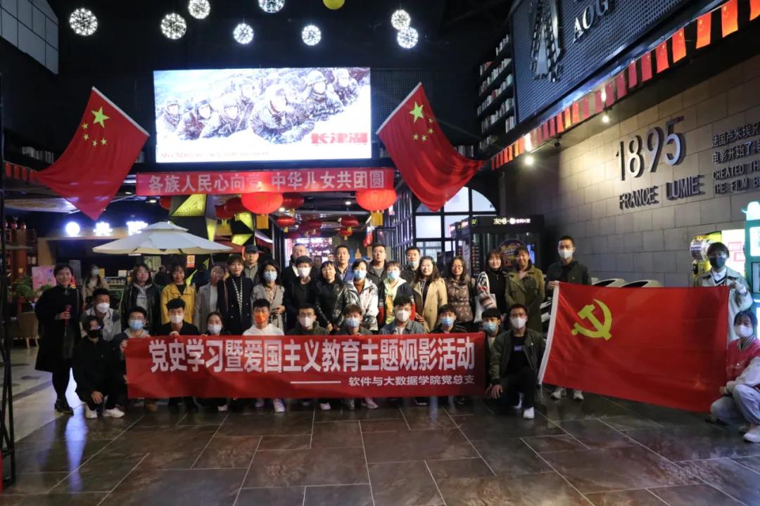 今年是中国共产党建党100周年,中华人民共和国成立72周年,中国人民志愿军抗美援朝71周年,为推进党史学习教育持续深入开展,丰富党史学习教育载体,进一步加强党员的党性修养,激发党员和党外知识分子的爱国热情,赓续红色血脉,软件与大数据学院党总支于2021年10月14日下午,组织我院党总支全体党员师生及党外知识分子观看爱国主义教育主题影片《长津湖》。
