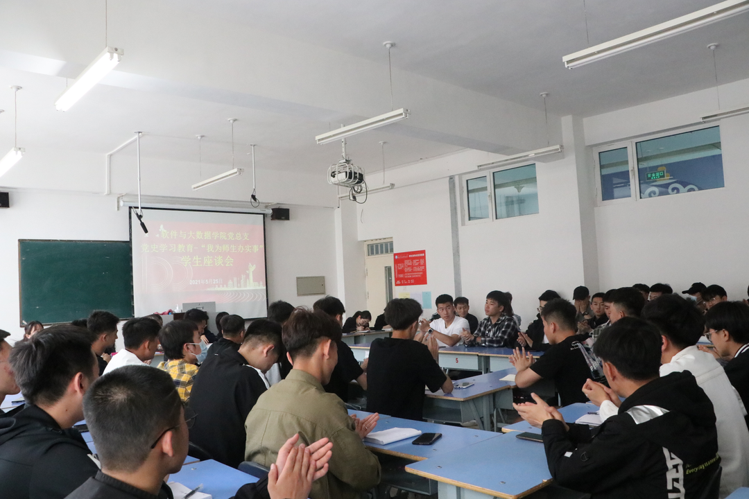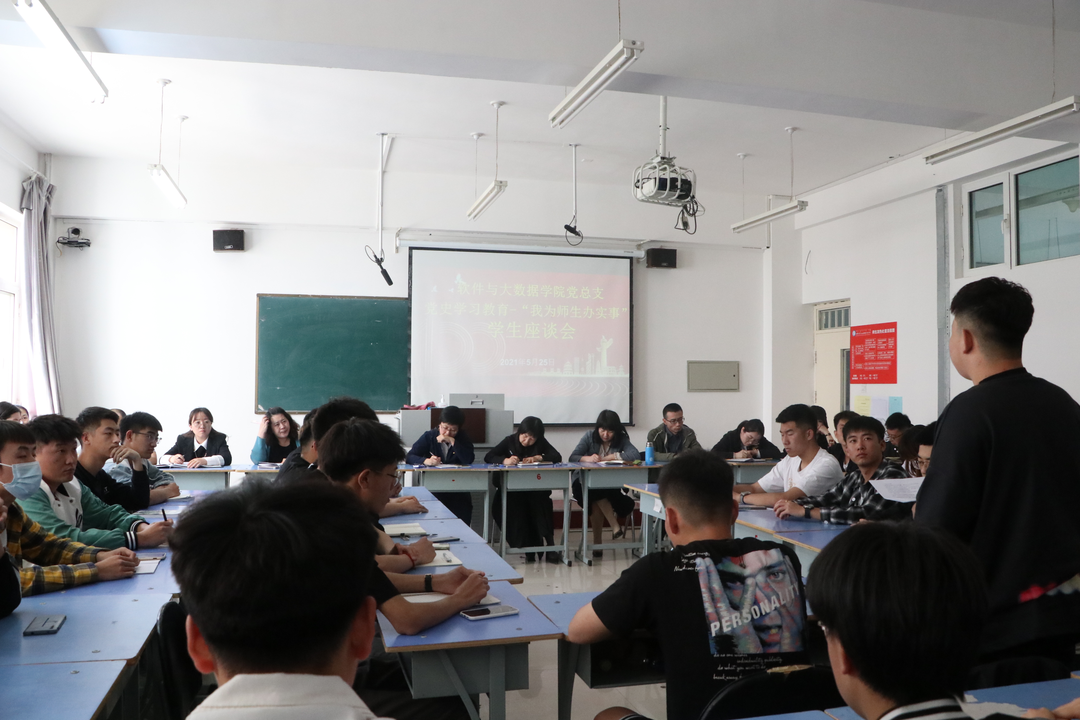 为进一步推进党史学习教育工作,加强各基层党支部建设,做好学生教育管理服务工作,推动“三问”活动的深化,真正为学生解难题、办实事,5月25日下午,软件与大数据学院党总支组织开展党史学习教育——“我为师生办实事”学生座谈会,党总支副书记杨志敏、副院长白文荣、副院长田雪出席座谈会,二级学院各科室负责人、各专业负责人及在校各班级班长和学生代表共同参加。