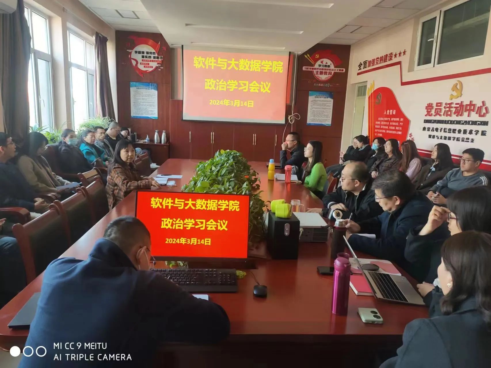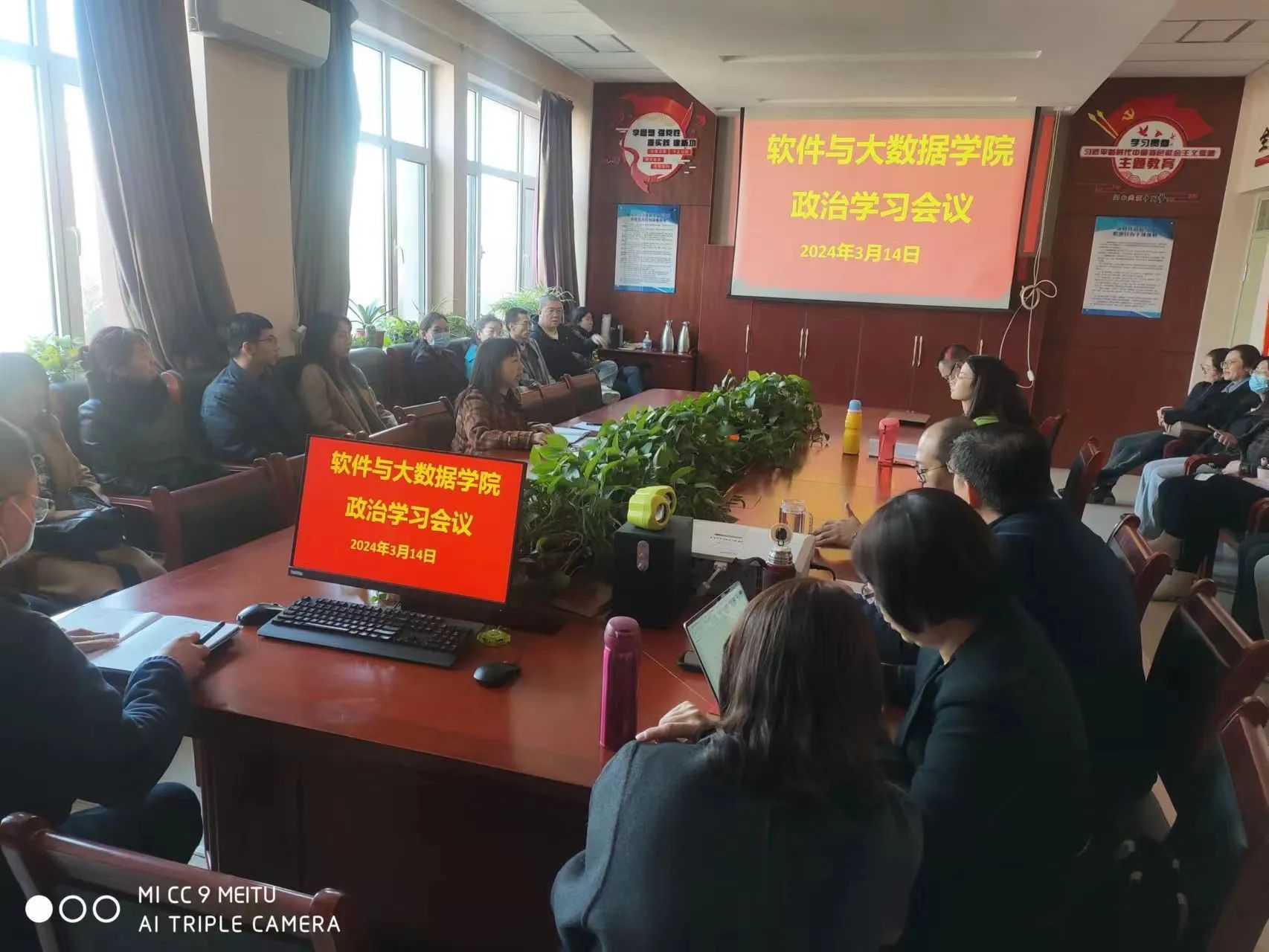 2024年3月14日下午,软件与大数据学院在A201会议室召开政治学习会议,会议由党总支书记杨志敏主持,全体教职工参加会议。