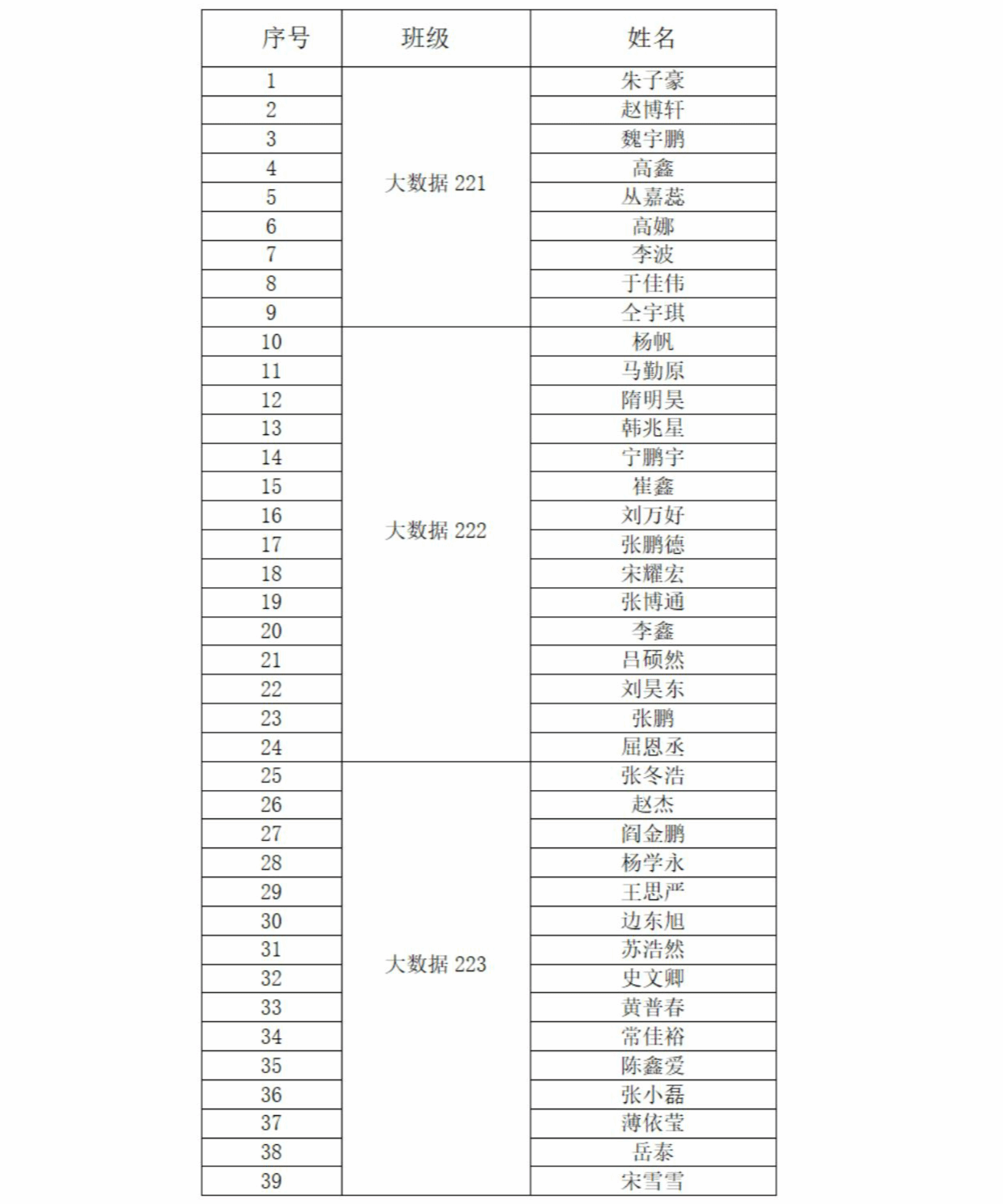 根据《内蒙古电子信息职业技术学院数据服务与AI模型训练企业项目实训营实施方案》,通过学生自愿报名,软件与大数据学院党政联席会议讨论确定了进入数据服务与AI模型训练企业项目实训营的学生名单,现公示如下: