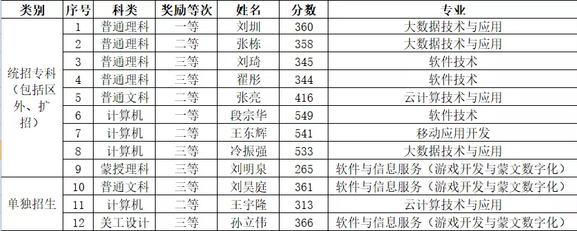 根据我校《内蒙古电子信息职业技术学院企业奖学金评定管理办法》(内电信院学发[2016]12号)文件精神,现将软件与大数据学院2019级新生高考高分企业奖学金获奖名单公示如下(详见附件),公示期2019年9月17日-2019年9月19日。如有异议请于公示期内拨打0471-4909884。