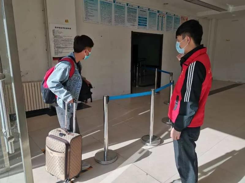 在返校前的备战训练中,学生干部们充分发挥先锋模范作用,协助学生工作处、团委相关教师,认真做好入校流程的定点演练,准备好一切疫情防控设备,切实做到“一点一消毒、一点一排查”、有引导、有监督、有记录,细致化每项疫情防控准备工作,确保全校学生安全返校。返校当日清晨5点,学生干部们已经各自就位,车站和机场的接站点、返校的接站车上、入校的测温点旁,处处都能看到他们忙碌的身影,校园广播的声音中、入校扫码验证的系统内,时时都留下了他们工作的痕迹。