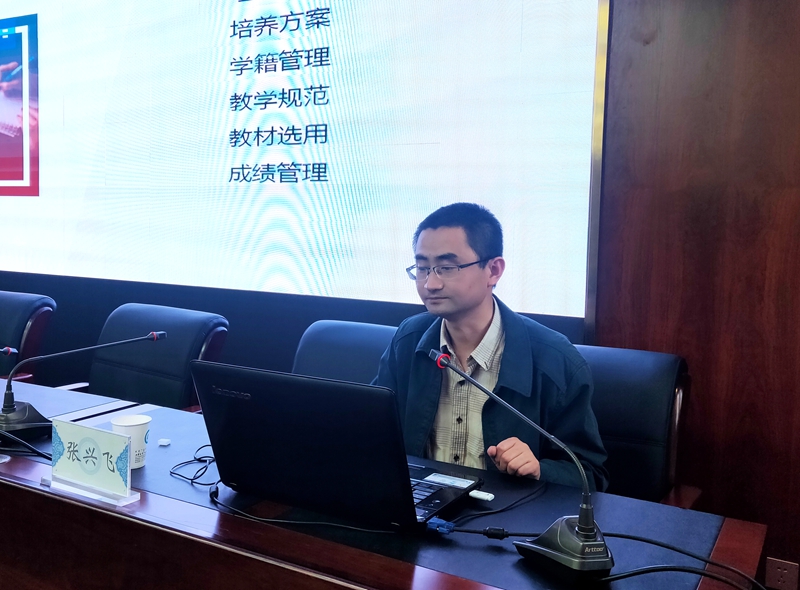 教务处副处长张兴飞作题为“教学管理制度”的讲座。