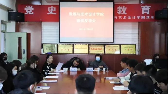 11月3日下午,数媒与艺术设计学院在教学楼C306会议室召开了2021-2022学年第一学期教学反馈会。学校教务处教学质量监控中心教师李桂娟、数媒与艺术设计学院教学副院长武迪、教务科科长李婧、教学秘书韩孟晗以及2020、2021级各班学生代表参会。