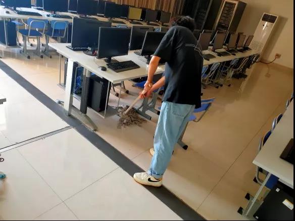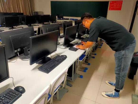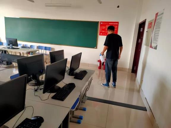 为确保开学实践教学工作顺利运行,数媒学院实训中心对实训室计算机、交换机、桌椅等进行卫生清洁和全方位消杀工作,同时也对实训室计算机软件进行升级改造。