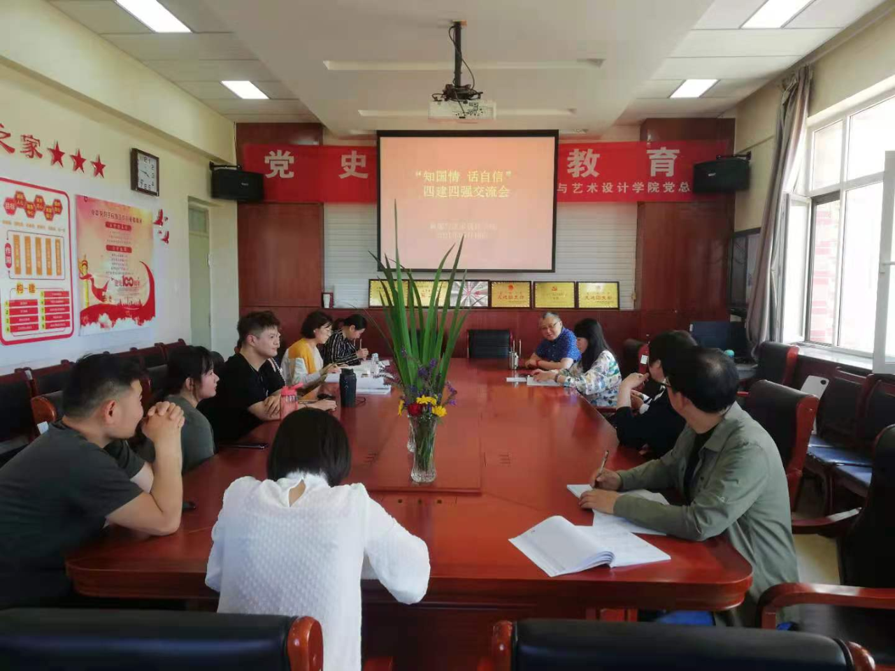 数媒与艺术设计学院党总支为切实做好新形势下统战工作,认真贯彻落实《中国共产党统一战线工作条例》,紧紧围绕习总书记关于统战工作的重要论述,按照校党委关于在党外知识分子中开展“四建四强”工作相关要求,为团结和凝聚党外知识分子,夯实“四建四强”基础工作,6月10日下午,数媒与艺术设计学院党总支组织院党务工作者、民主党派教师、海归青年教师开展“知国情、话自信”海归系列恳谈会参会分享交流会,由我院海归青年教师、预备党员牛嘉老师进行分享。