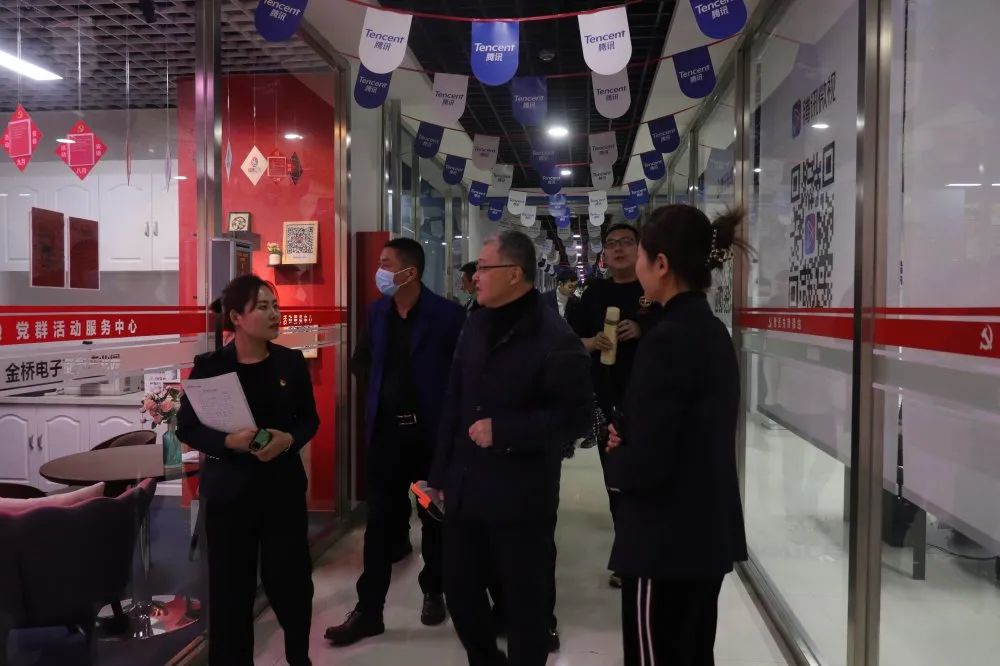 首先,园区的党员同志带领总支的教师党员参观了产业园区联合党委特色党建活动开设的各类专题版块及活动场所。金桥电子商务产业园以“一流党建促一流园区”为发展理念,因地制宜打造出“一个中心、双轮驱动、四套机制、六个平台、六个引导”的特色党建工作模式。