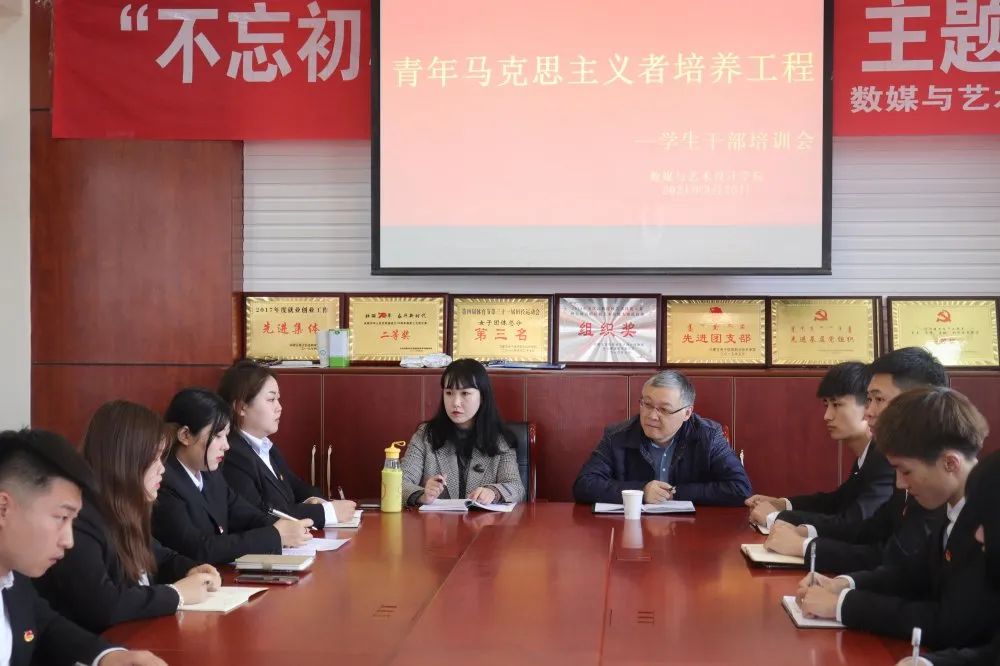 以习近平新时代中国特色社会主义思想为指导,认真贯彻落实习近平总书记关于青年工作的重要思想。数媒与艺术设计学院于3月25日在C座306会议室开展青年马克思主义者培养工程暨学生干部培训会,我院党总支书记安海涛、团总支负责人李方及全体学生干部参加会议,此次培训会议由安海涛书记主持召开。
