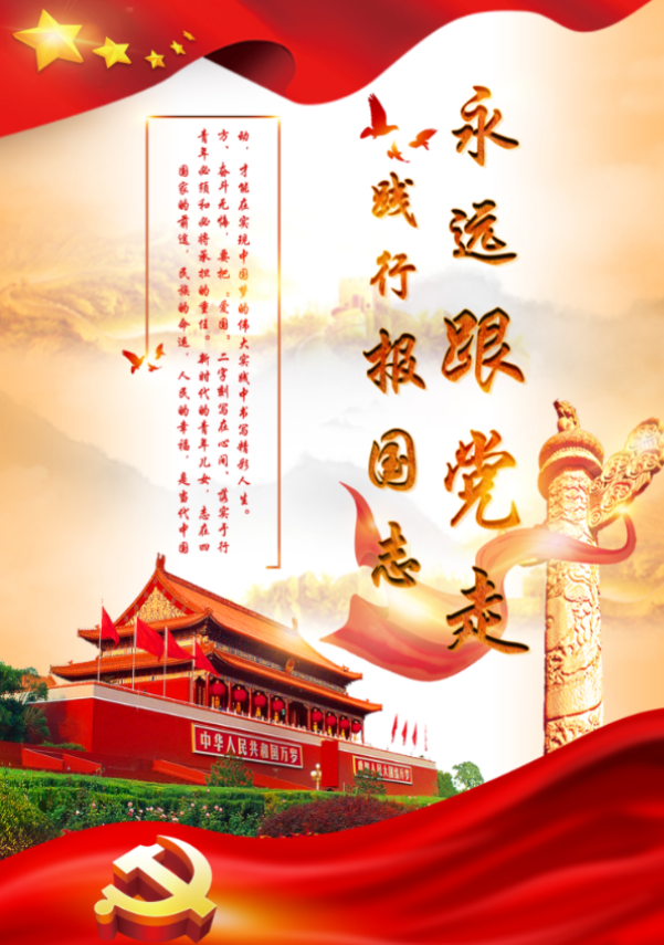 为深入推进“践行报国志,永远跟党走”主题教育活动,教育引导青年学生志存高远、脚踏实地,学好知识、打好基础,增长才干,为青年学生健康成才营造良好的文化氛围。数媒与艺术设计学院团总支举办“践行报国志 永远跟党走”主题设计大赛。同学们在竞赛中提升自我,在热爱中发挥水平,不忘新时代大学生的报国志,跟党走的光荣使命,用画笔绘出热爱。 “践行报国志,永远跟党走”活动中,每位参赛同学按照比赛要求,紧扣主题,创作出许多优秀作品。通过同学们的作品展示,体现了同学们的爱国热情。 下面让我们看一下此次“践行报国志,永远跟党走”活动中获奖的同学吧!
