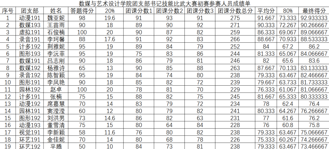 本次团支书技能比武大赛的成功举办,不仅提高了各支部团支书的基础团务能力同时也提高了自身的表达能力,应变能力。激励各团支书不断提高业务能力,在支部建设中贡献自己的力量。此次大赛的举办加强了数媒与艺术设计学院团支部建设工作与团支部活力,对今后团支部工作的顺利开展具有重要推动作用。