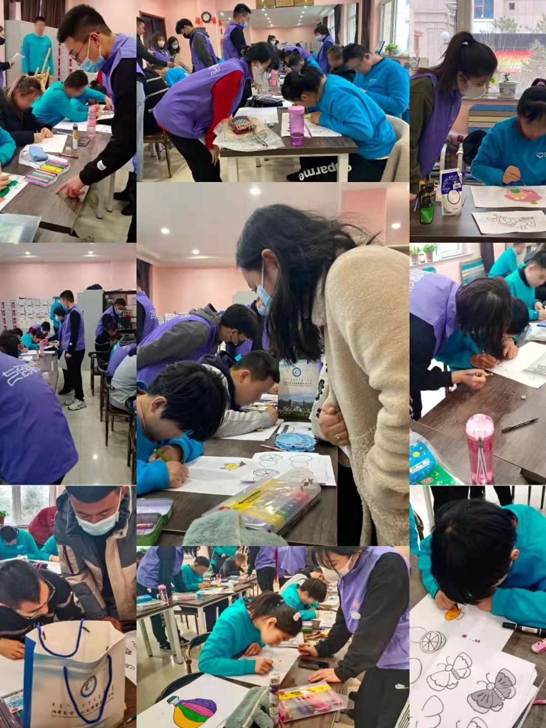 活动当天志愿者与孩子们一起拿起画笔绘画孩子们的心中所想,志愿者们的热情与亲和力感染了孩子们,他们积极参与互动,现场气氛热烈,欢笑声此起彼伏。在本次活动中,志愿者们给这些特殊的孩子们带去了陪伴与关怀,更使志愿者们增强了服务意识和社会责任感。志愿者们分工合作,认真投入,圆满完成了此次志愿服务活动,以实际行动践行了志愿服务理念,传播了志愿服务精神。