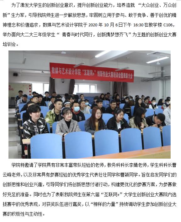 【创新协梦想齐飞】数媒学院互联网+创新创业大赛培训会暨表彰大会