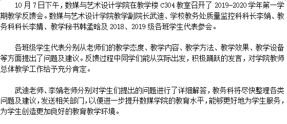数媒与艺术设计学院召开 2019-2020学年第一学期教学反馈会