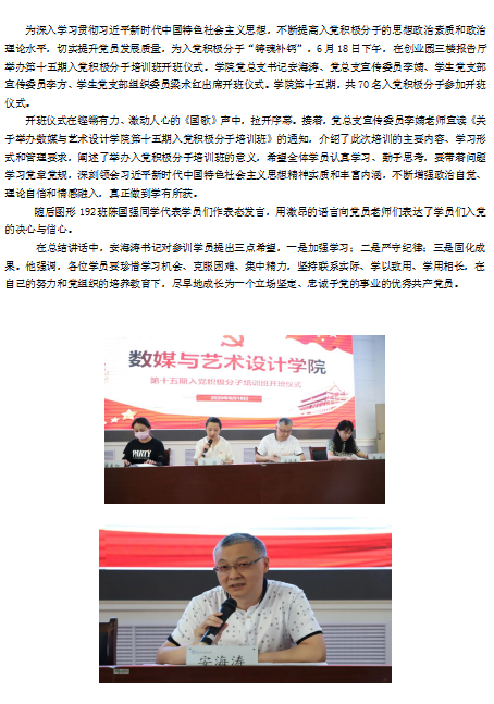 数媒与艺术设计学院举办第十五期入党积极分子培训班开班仪式