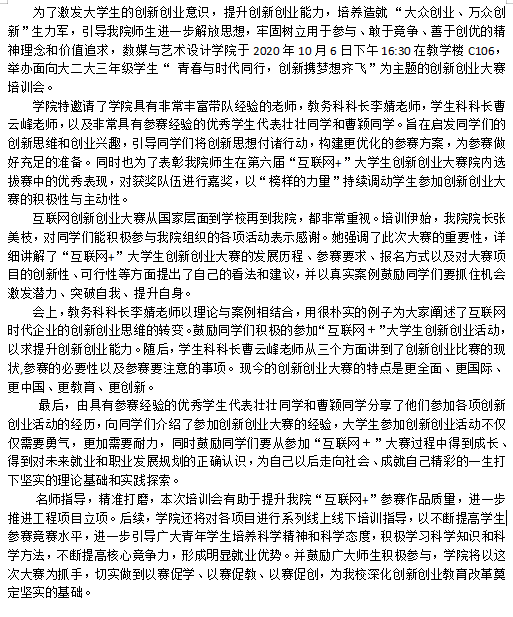 数媒与艺术设计学院“互联网+”大学生创新创业大赛培训会顺利举办