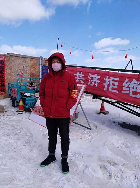 在全民抗击疫情期间,我在内蒙古赤峰市宁城县天义镇桲椤树村村委会做志愿者服务。从2月15日至今日代表村委会进行路口盘查张贴标语,遣散村里聚堆儿人员,同时协助疫情防控相关人员进行工作。我能够作为志愿者为村里的防疫工作做出贡献,也是一次难能可贵的经历,虽然不能和在前线的医务人员相提并论,但是我做了力所能及的事情,就不愧对自己,无愧于青春。