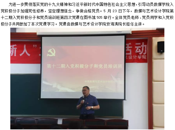 数媒与艺术设计学院第十二期入党积极分子和党员培训班第四次党课“奋斗的青春最美丽——无产阶级伟人诗词的启示”