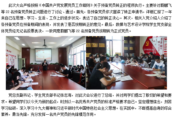 数媒与艺术设计学院学生党支部 召开预备党员转正大会