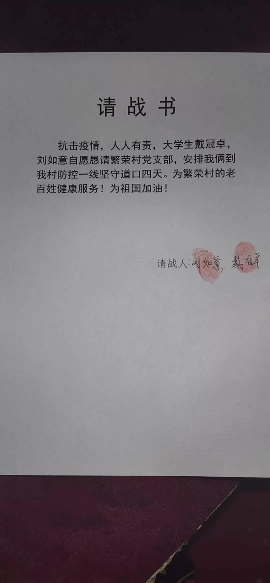 全国疫情阻击战已经打响,作为一名新时代的大学生,从1月31日开始招募志愿者,我第一时间加入到社区防疫志愿者的行列中。每日与社区工作人员,从入户登记人口信息到居民进出检查,虽然都是基层的一些小事,但是却是疫情阻击战的重中之重,只有做好基层群众的工作才能更好的帮助国家控制疫情。正所谓天下兴亡, 匹夫有责。因为心中有一颗爱国的赤子之心,我志愿参加疫情阻击战,贡献自己的青春力量。