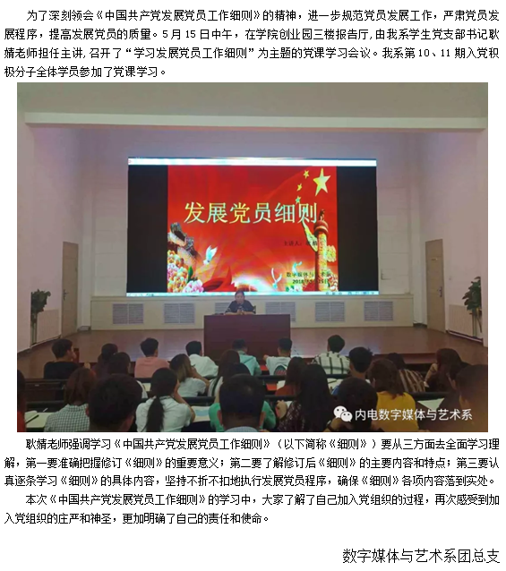 第十一期党课培训班第三讲——学习《中国共产党发展党员工作细则》