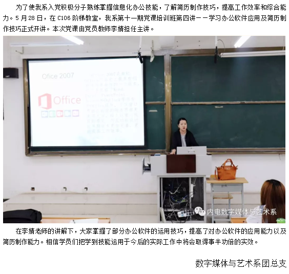 第十一期党课培训班第四讲——学习办公软件应用及简历制作技巧