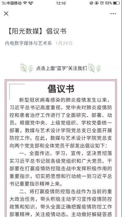 疫情就是命令,防控就是责任。数媒与艺术设计学院为积极应对疫情铸牢学生心理防线,通过线上丰富多彩的心理疏导和干预坚决打赢防疫心理阻击战。数媒与艺术设计学院积极响应党的号召,及时成立学院防控领导小组,1月29日数媒与艺术学院发出《倡议书》,号召广大青年学生积极心态,科学的方法面对疫情!2月7日我院开疫情防控工作落实与部署线上视频会议,安排部署如何通过线上进行学生心理辅导,打赢防疫心理狙击战。
