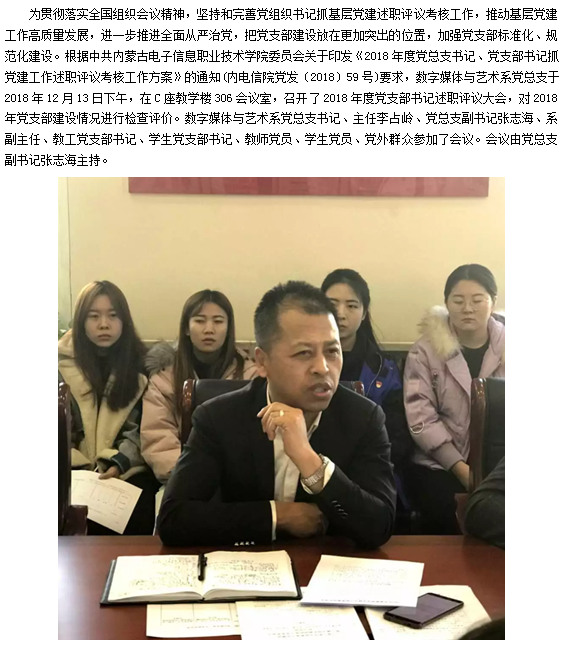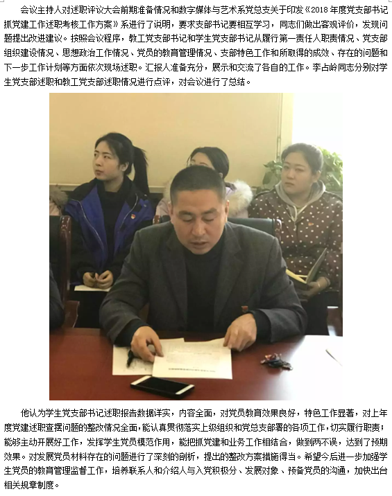 数字媒体与艺术系党总支召开2018年度党支部书记抓党建工作述职评议考核工作大会