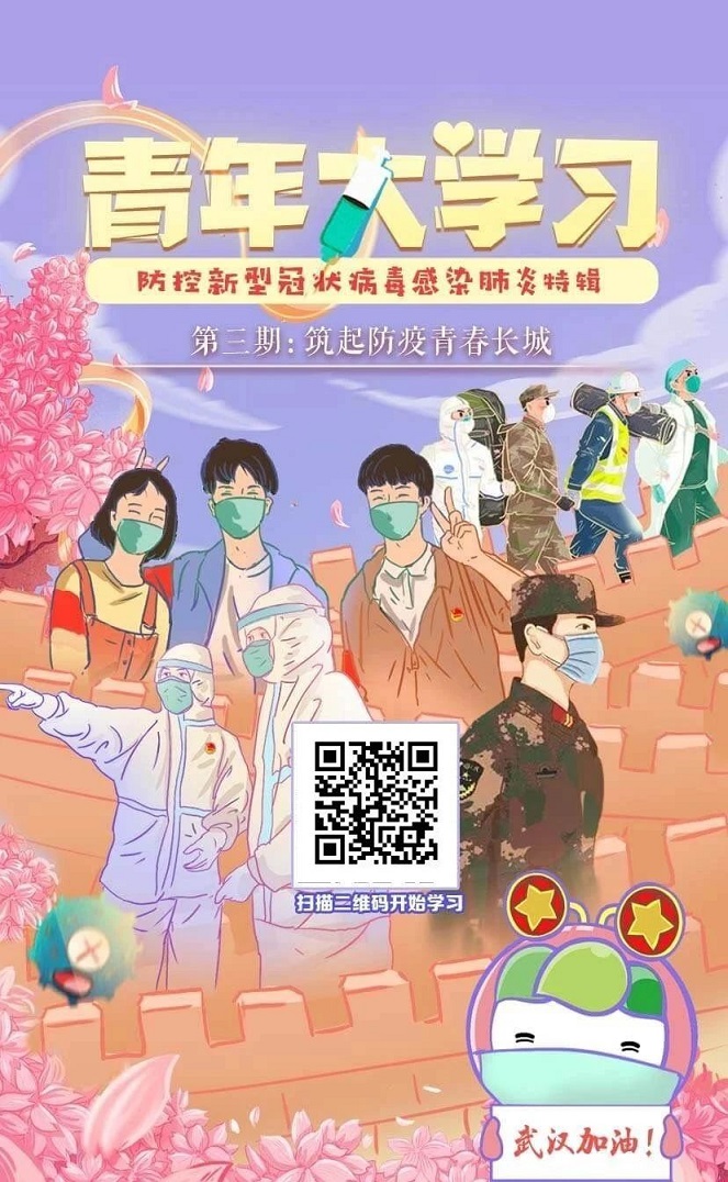习近平总书记指出,这次新冠肺炎疫情,是新中国成立以来在我国发生的传播速度最快、感染范围最广、防控难度最大的一次重大突发公共卫生事件。但是中国人民没有被困难吓倒,特别是中国青年!他们用义无反顾的“逆行”表现出勇气担当,用令人叹服的实绩表现出本领高强,用身处逆境而不消沉的言行表现出达观泰然,党和人民也在这次考验中充分检验了当代青年的“成色”,让我们更加坚定了打赢疫情防控人民战争、总体战、阻击战的信心。正如总书记所说,只要青年都勇挑重担、勇克难关、勇斗风险,中国特色社会主义就能充满活力、充满后劲、充满希望。本期团课,让我们向奋战在防疫一线的青年致敬!