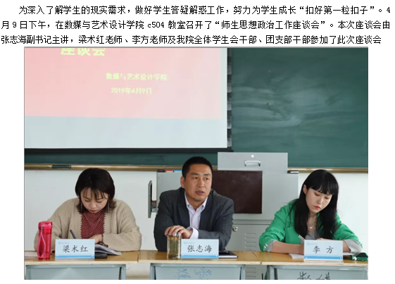 我院于4月9日在C座504召开“师生思想政治工作座谈会”