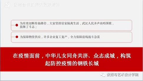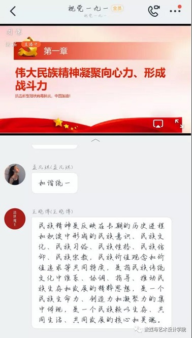 为深入学习宣传贯彻落实习近平总书记关于新型冠状肺炎疫情防控工作的重要指示批示精神,进一步增强我院团员青年爱国主义情怀,巩固疫情防控知识,增强防控疫情责任意识。内蒙古电子信息职业技术学院数媒与艺术设计学院团总支以线上学习互动的方式在全院的范围内开展“凝聚青春正能量