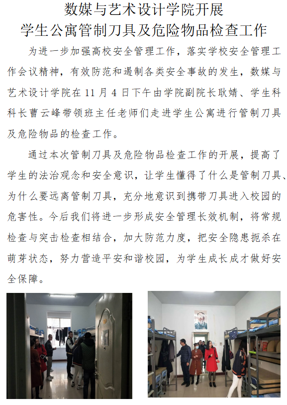 数媒与艺术设计学院开展 学生公寓管制刀具及危险物品检查工作
