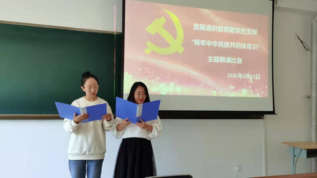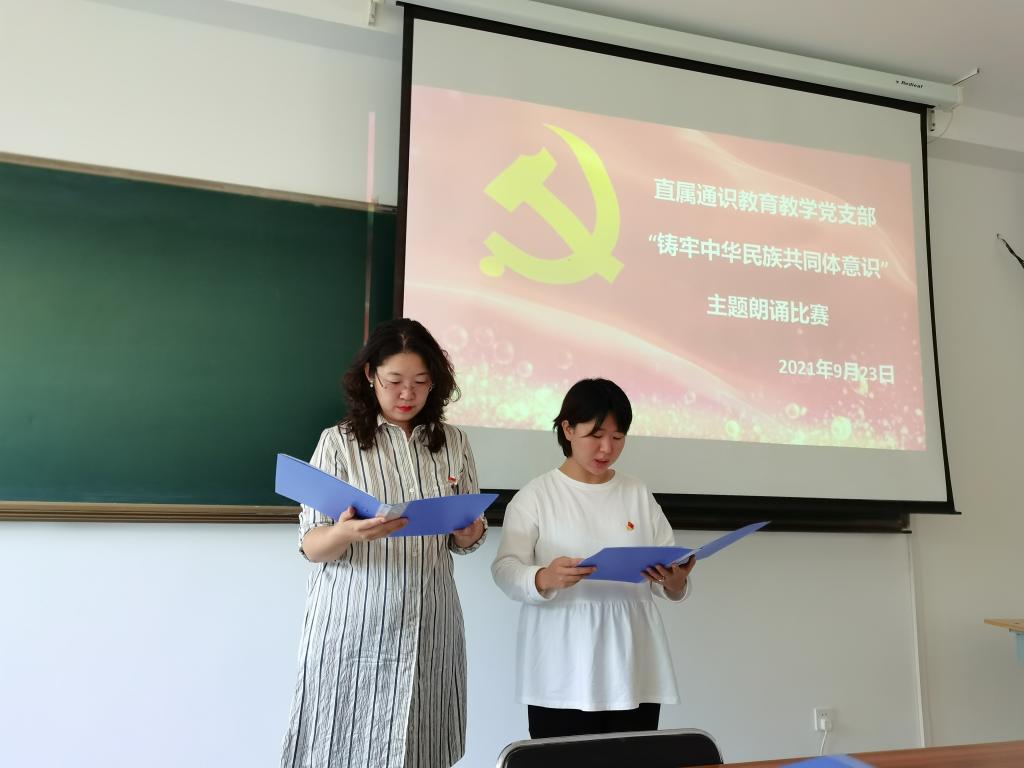 以颂交流,续写民族团结新韵律;携手同行,铸牢中华民族共同体意识。为深入学习贯彻习近平总书记关于民族工作的重要论述,扎实开展铸牢中华民族共同体意识教育,引导党员树立正确的国家观、历史观、民族观、文化观、宗教观,切实增强“五个认同”,2021年9月23日下午,直属通识教育教学党支部组织开展“铸牢中华民族共同体意识”主题朗诵比赛。