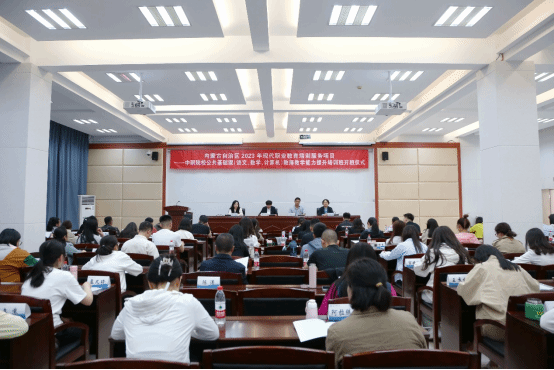 内蒙古自治区2023年职业院校教师素质提高计划(中职)公共基础课(语文、数学、计算机)教师教学能力提升培训班在我校顺利开班,由我校通识教育教学部和计算机与网络安全学院共同承办。5月14日,培训班举行开班式,内蒙古职教国培项目办副主任曹睿亮,学校党委委员、副校长秦婷,计算机与网络安全学院党总支书记耿静,通识教育教学部主任孟庆新出席开班式。开班式由孟庆新主持。