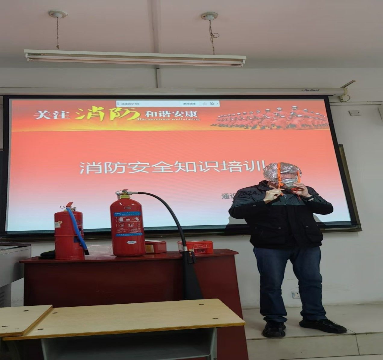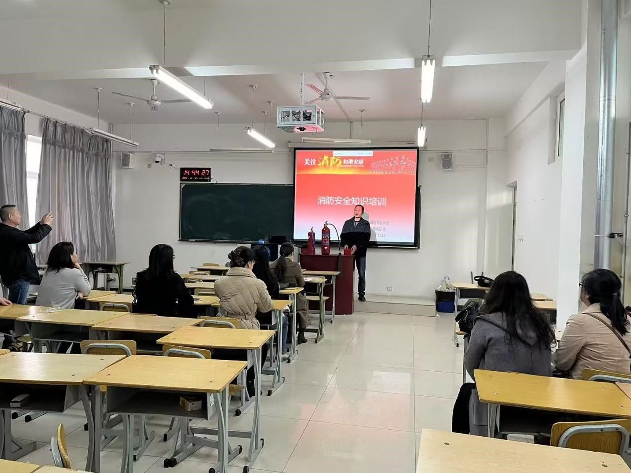 本月正值消防安全月,11月12日下午14时30分,通识教育教学部外语教研室在教学楼D座103教室开展消防安全知识培训,邀请学校安全保卫处的仲青林、杜彦彪和包达林台三位老师为我们进行专业消防安全知识培训。