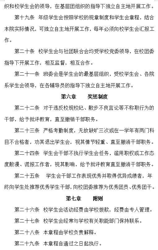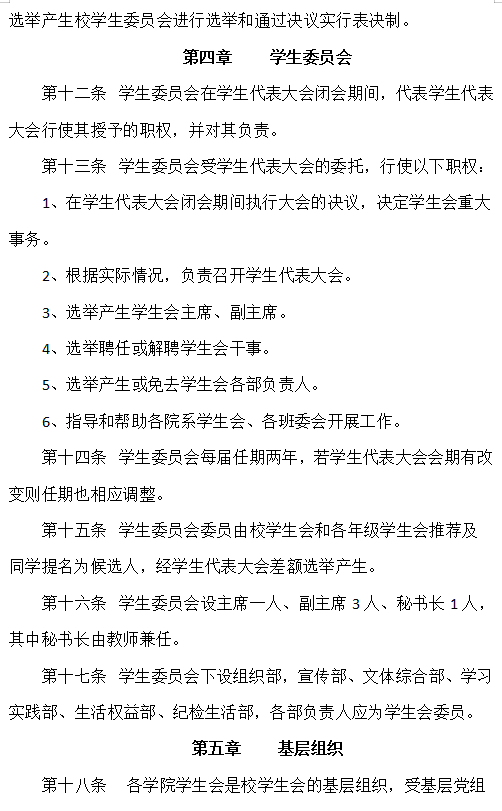 4. 除主席、副主席(探索实行轮值制度的高校为执行主席)、部长、副部长、干事外未设其他职务。