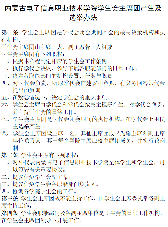 二、《内蒙古电子信息职业技术学院学生会章程》