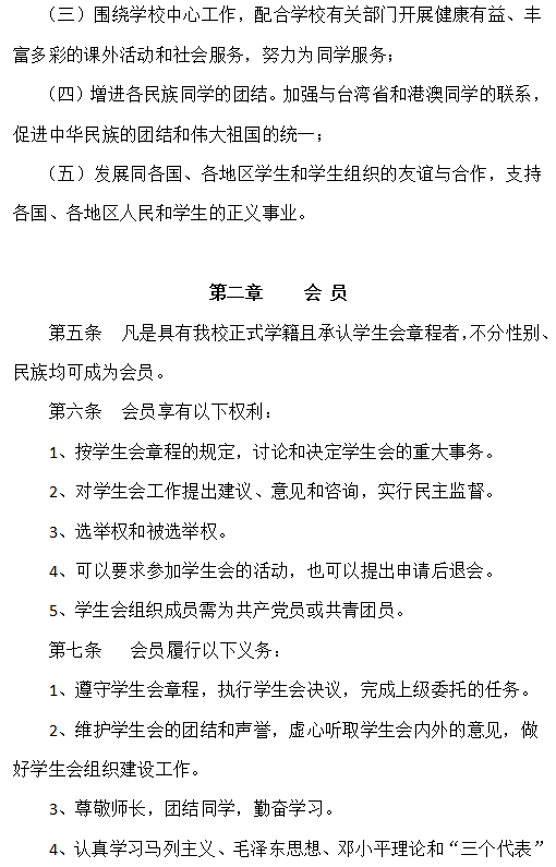 5. 学生会组织工作人员为共产党员或共青团员。