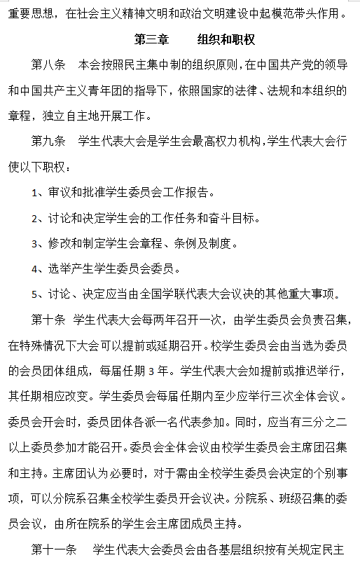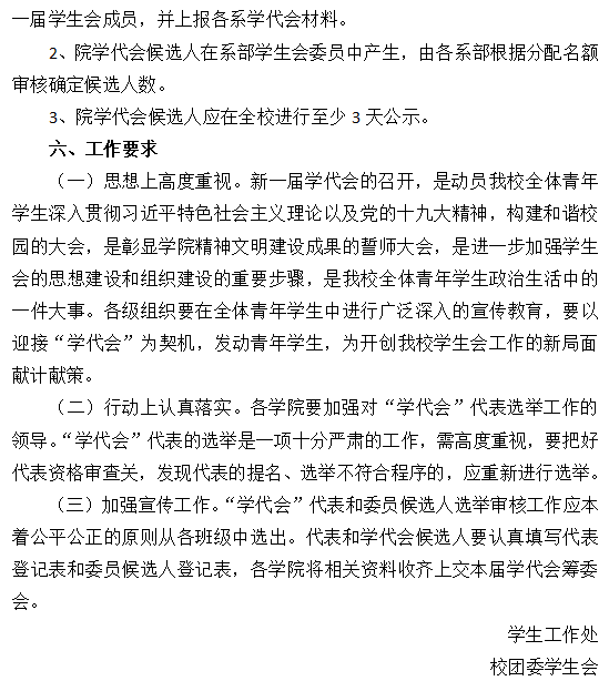 10. 校级学生(研究生)代表大会代表经班级团支部推荐、学院(系)组织选举产生。
