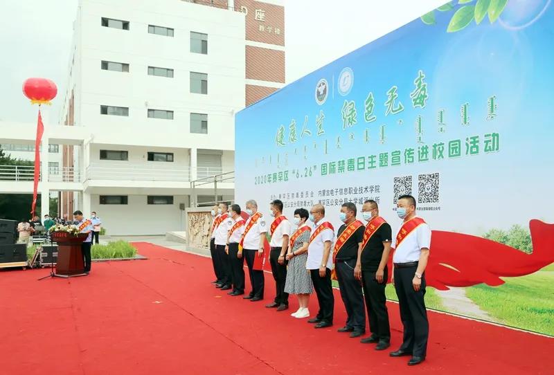 2020年6月24日上午9:30,呼和浩特市大学城首届“健康人生,绿色无毒”禁毒文化展览在我校隆重开幕。我校校长兼党委副书记王生铁教授致欢迎辞。本次活动也分别邀请到了内蒙古自治区公安厅禁毒总队、呼和浩特市公安局禁毒支队和呼和浩特市公安局赛罕分局禁毒大队三级机关相关领导及负责人共同参与,并依次发表重要讲话。此次活动由呼和浩特市公安局赛罕分局禁毒大队主办,我校承办,校学生处保卫处和团委协办。