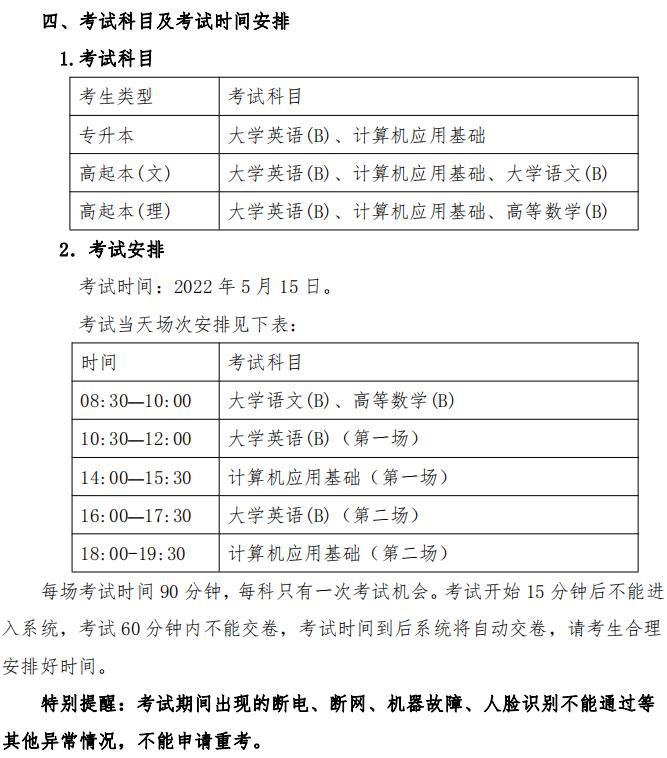 统考科目全部采取固定时间段在线闭卷考试模式。