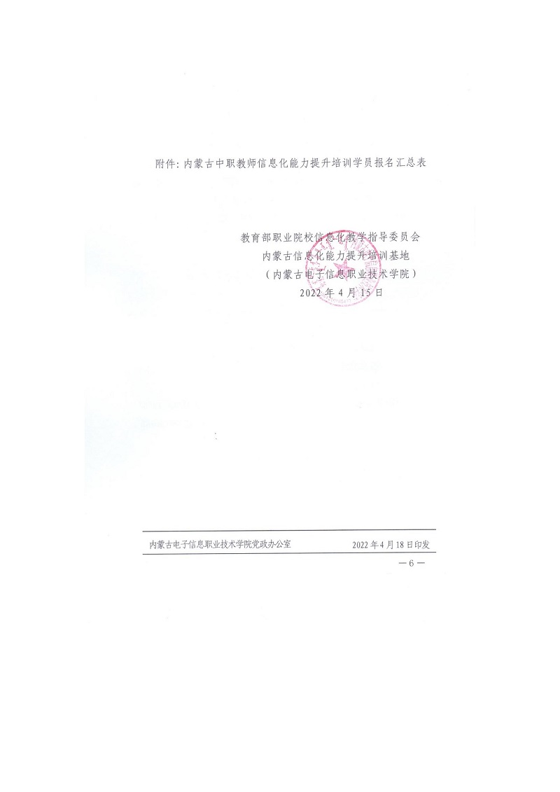附件:内蒙古中职教师信息化能力提升培训学员报名汇总表https://crjyb.imeic.cn/crjyb/UserFiles/File/20220429/20220429081314_434.xlsx