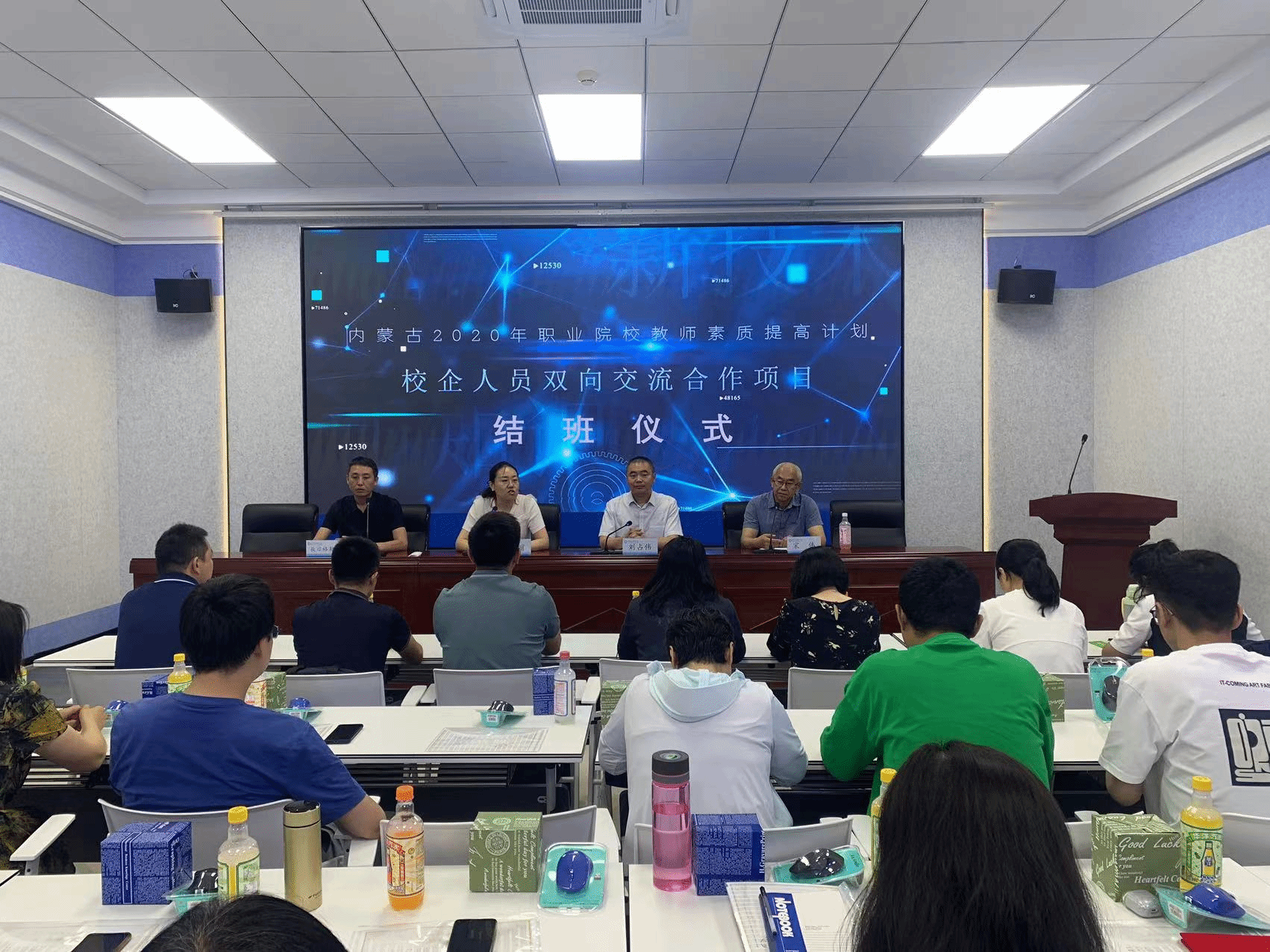 刘占伟作最后总结讲话,首先对老师们顺利结业表示衷心的祝贺,同时对各位教师的高素质表现给予了高度赞赏,并希望各位老师将所学带回去应用好,为学校的发展及职业教育贡献出自己的力量。内蒙古自治区2020年职业院校教师素质提高计划——电子信息类“校企人员双向交流”培训班结业典礼顺利完成。